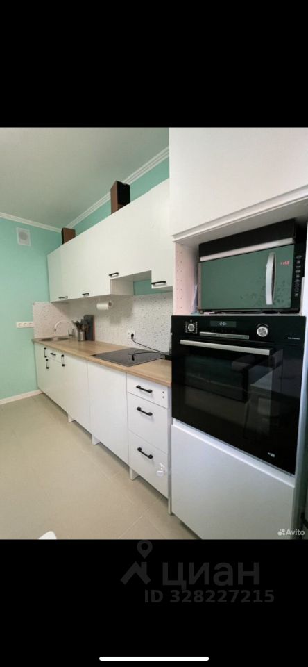 Квартира полностью готова для комфортного проживания. Здесь есть просторная кухня площадью 15 кв. м, оснащенная всей необходимой мебелью и техникой, включая холодильник, духовой шкаф, варочную панель, микроволновую печь, стиральную машину, пылесос, утюг..