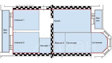 Две лоджии, общей площадью 20 м2, итого вся площадь 140 м2.