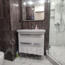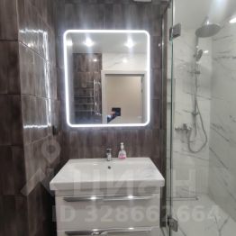 Ванная комната отделана стильной плиткой; для удобства предусмотрена большая раковина и зеркало с подсветкой и просторная душевая кабина.