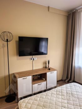 В квартире современный евроремонт, есть балкон. Комнаты обставлены мебелью и полностью оборудована бытовой техникой: есть холодильник, стиральная машина, СВЧ и кондиционер. В квартире уже подключен интернет.