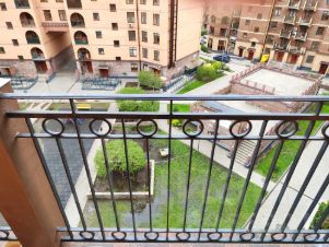 Окна квартиры выходят во двор, что позволяет наслаждаться видом на зелёную территорию и обеспечивает хорошую освещённость помещений.