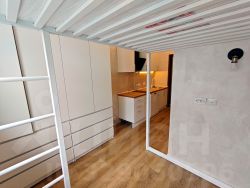 Выключатель мастер-света у входа выключает свет в основной части студии, что удобно, когда надо выходить, не надо снова разуваться. Другой выключатель прямо над спальным местом позволит выключить свет, не спускаясь с кровати.