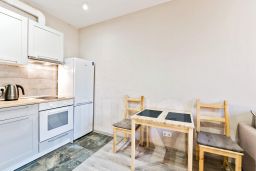 * Микроволновая печь, плита, холодильник, чайник, набор посуды