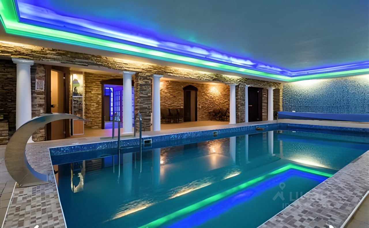 Сдается Коттедж по Пятницкому шоссе в 10 км. от МКАДа. Трех - этажный коттедж 1000 м² (кирпич) на участке 27 сот., Интерьеры коттеджа выполнены в современном стиле. Также у нас есть большой банкетный зал на 60 человек. В коттедже 4 уровня. На цокольном этаже коттеджа: бассейн 12х5 метра с подогревом, просторная финская сауна на 8 человек, прачечная, санузел с душевой кабиной. На 1 этаже коттеджа: зимний сад 200 кв.м., холл, кухня с оборудованной духовым шкафом, посудомоечной машиной, электроплитой, имеется вся бытовая техника для приготовления различных блюд; каминный зал, переговорная, санузел. На 2 этаже коттеджа: 4 спальные комнаты с двуспальными кроватями и 2 спальни с односпальными кроватями, все спальни полностью меблированные. Каждая комната оборудована санузлом и ванной/джакузи. Также есть отдельный выход с балкона в зимний сад. На 3 этаже коттеджа: Спальня с двуспальной кроватью также полностью меблированная, спортзал 150 м², санузел с душевой кабиной.