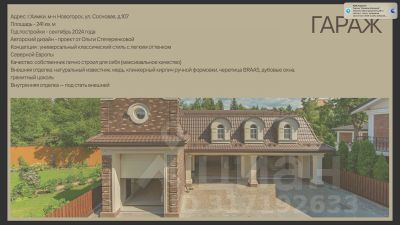 Гараж двухэтажный площадью 241 м2 рассчитан на 4 автомобиля и 1 катер длинной до 9 м. Второй этаж включает 3 помещения хозяйственного назначения. Гараж имеет все необходимые инженерные системы