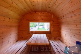 Участок высажен газоном, стоит баня, автополив, навес на 3 авто.