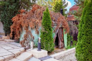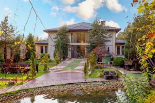 На участке: декоративные деревья и кустарники, зарыбленный пруд с мостиком, большая беседка с барбекю и мангалом до 20 человек.