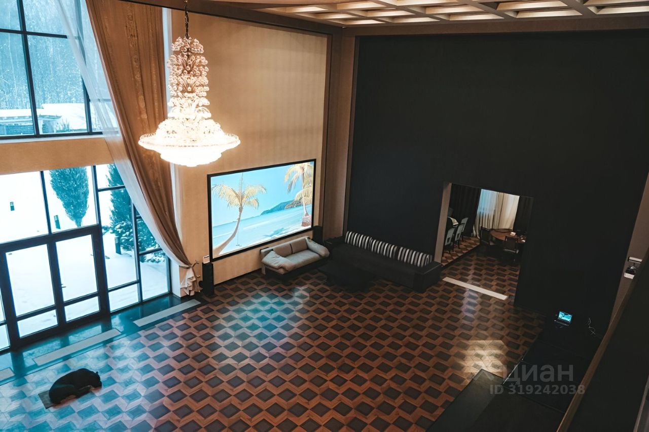 На 1 этаже: 2 спальни (40 кв.м. и 30 кв.м.), полностью оборудованная кухня 50 кв.м, холл 130 кв.м. (высота потолков 4 м.), домашний кинотеатр, зал с камином 200 к.м. (высота потолков 8 м.), 2 санузла с ванной и джакузи (20 кв.м. каждый), бассейн с противотоком и подогревом 8х5м, комната отдыха 10 кв.м.