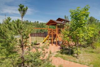 Среди зелени можно обнаружить уютную зону для барбекю с туалетом, который будет доступен в любое время года. Для детей предусмотрена площадка с городком, качелями, аттракционами и батутом. Также на участке имеются хозяйственные постройки для хранения инвентаря. Приобретите дом у озера, расположенный рядом с Москвой, в камерном посёлке на десять домовладений в районе Новогорска. Этот жилой дом полностью готов к заселению и меблирован. Он был построен по индивидуальному проекту для комфортного проживания.