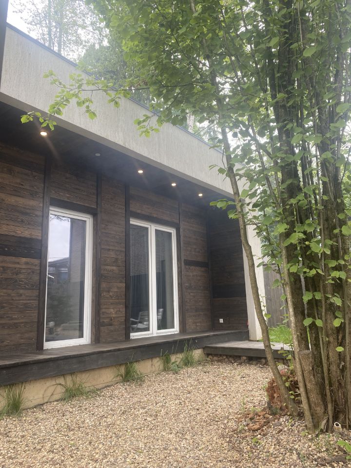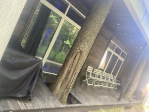 ДОм состоит из 4 Комнат: просторной гостиной, 3 спальни изолированные, террасы с диванами, сан узлом с большой ванной( с видом на лес).