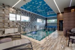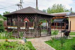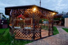 СПА-зона: всесезонная вместительная крытая отапливаемая беседка с печью, кухней, столами, креслами и стульями, телевизор, шезлонги, подогреваемый бассейн, сауна.