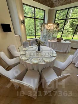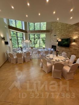 На 1-м этаже: столовая 45 кв.м. на 25 персон с панорамными окнами. Холл-гостиная 190 кв.м., камин с автоматическим подъемным стеклом, английский диванчик и кресла. Кухня с необходимой посудой и техникой. Прихожая, 2 спальни, кабинет, СПА-зона.