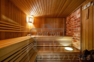 СПА-зона: электрическая сауна с цветотерапией, одна стена оснащена розовой гималайской солью, душевая, обливное ведро, подогреваемый бассейн с противотоком 3,5*6*1,7, шезлонги
