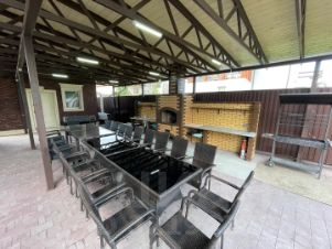 Мангальная зона с печью под навесом для 20-ти гостей, казан