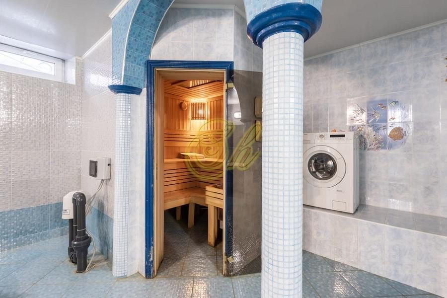 Цокольный этаж сауна, душевая, бассейн, кухня, столовая с ТВ и караоке.