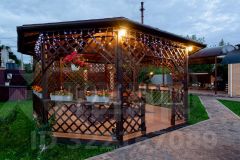 СПА-зона: всесезонная вместительная крытая отапливаемая беседка с печью, кухней, столами, креслами и стульями, телевизор, шезлонги, подогреваемый бассейн, сауна.