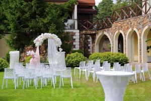Ухоженный двор, идеально подходящий для свадебной церемонии, украшен потрясающей альпийской горкой и яркими цветами. Для удобства гостей оборудована просторная парковка и зона барбекю, где вы сможете насладиться приготовлением блюд на свежем воздухе.