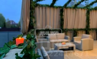 УЧАСТОК: 15 соток. Высажен газон. Очень красивая терраса с садовой мебелью. Мангальная зона. Открытая парковка на 3 автомобиля.