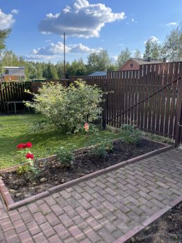 Участок ухоженный с ягодными кустами, клубничными грядками, цветниками. Основная часть земельного участка - газон.