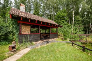 На территории находится беседка и декоративный пруд. Участок граничит с лесом.