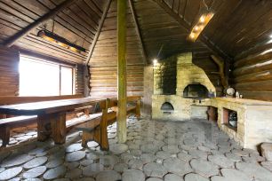 -1 уровень: тёплые полы, каминный зал с диванами и TV, столовая с кухней-студией, санузел с душевой и стиральной машиной, проектор и экран с диагональю 3 м, музыкальная система 9:1