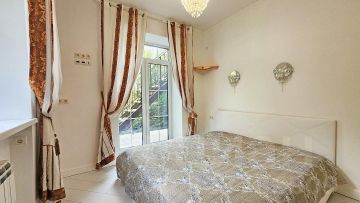 Прекрасный дом в зеленом районе на длительный срок в аренду ! Об: 200 кв.м. Охраняемый поселок. Дом огорожен, парковка. В доме три уровня, первый уровень: холл, гардеробная, второй уровень: кухня столовая, три спальни, сан.узел, выход на террасу, третий уровень- мансарда: спальня, гардеробная, сан.узел, выход на террасу и отдельный выход во двор. Светлый функциональный дом с интересной планировкой!