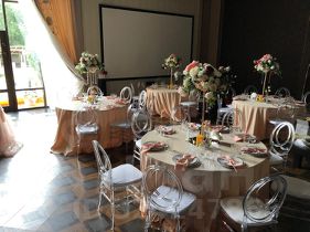 С 14 спальнями и 13 санузлами, это место может разместить до 80 гостей с максимальным комфортом. Просторный зал площадью 190 м² вмещает до 100 человек, что делает его идеальным для торжественных мероприятий. Для больших праздников предусмотрены шатер и веранда, которые могут принять до 120 человек. Это позволяет организовать выездные мероприятия на свежем воздухе, создавая уникальную атмосферу для ваших гостей.