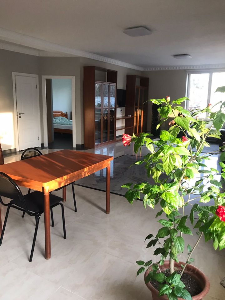 Просторная кухня гостиная 65м2, две спальни по 20м2, 2с/у , все необходимое для проживания имеется: встроенная техника ( холодильник, стиральная машинка, место для посудомоечной машинки, духовка, микроволновка, телевизоры) .