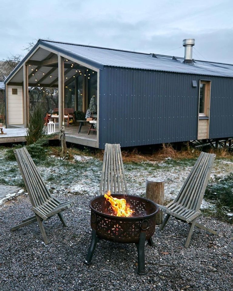 Рядом с домом мангальная зона с мангалом и костровой чашей.