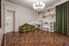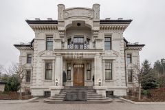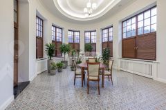 Дом построен в классическом стиле с применением качественных и дорогих материалов. В жилых помещениях уложен наборный дубовый паркет, пол в вестибюле, холлах 1-2 этажей, гостиной, каминной и лестница выложен натуральным мрамором.