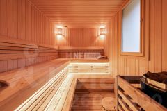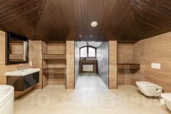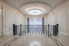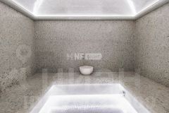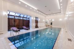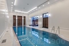 1 этаж 517 кв.м.: 2 спальни со своими с/у, гостевой с/у, гостиная со вторым светом, каминная, столовая, кухня, зимний сад, бассейн 14 метров с противотоком и гидромассажем, комнатой отдыха, сауной, хаммамом, 2 душевыми и с/у. Терраса 28 кв.м, балкон 8,6 кв.м;