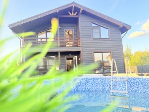 1 этаж: огромная гостиная с двойным светом, (высота 6,5 м), кухня, спальня, бойлерная, гардеробная, санузел, 2 входа.