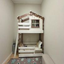 В детской двухъярусная кровать с матрасами 80/180 и диван 80/200.