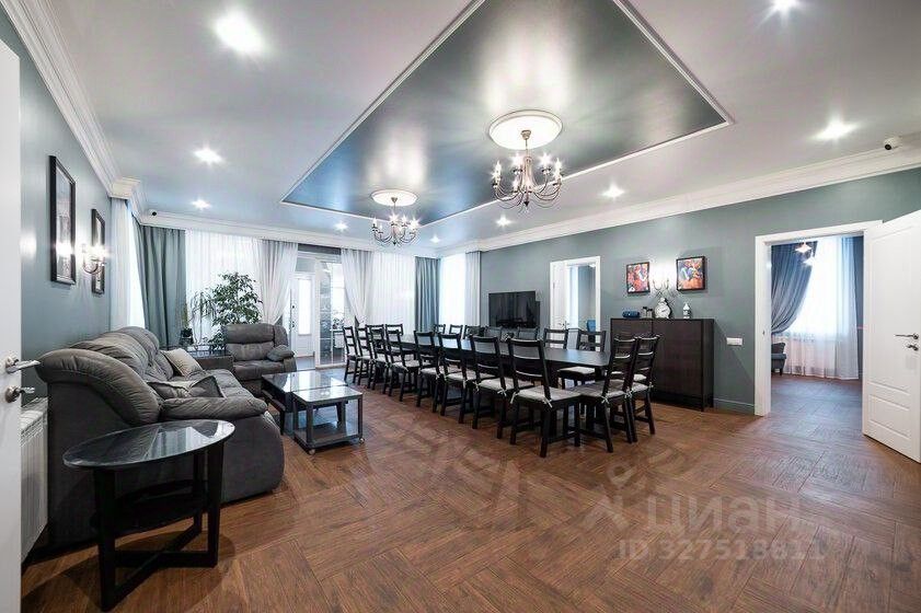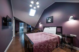 Коттедж площадью 800 м2 расположен в 9 км от МКАД по Новосходненскому шоссе.
