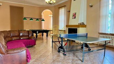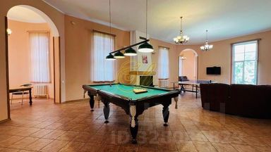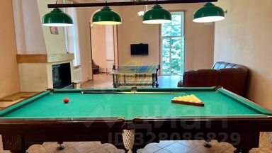 Первый этаж - просторный холл 85 кв.м с высокими потолком 6.5 м: русский бильярд 10 фут, настольный теннис, кожаные диваны ТВ, отдельный выход на участок с газоном.
