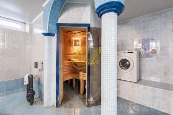 Цокольный этаж сауна, душевая, бассейн, кухня, столовая с ТВ и караоке.