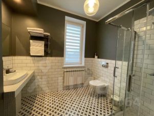 Коттедж площадью 800 м2 расположен в 9 км от МКАД по Новосходненскому шоссе.