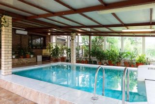 ОБ УЧАСТКЕ: На участке: крытая беседка, качели, мангал парковка 4 машины ( во дворе) О ДОМЕ: 400м.кв., 3 этажа Максимальное размещение 25 человек. На ночь до 25 человек. Всего 6 спален. 1 этаж: гостиная с камином в охотничьем стиле, кинотеатр, караоке, кухня, оборудованная всей необходимой техникой, 2 спальни, комната в японском стиле, сауна, бассейн с подогревом, зимний сад, с/у с ванной. 2 этаж: 3 спальни, бильярдная комната, с/у с ванной и гидромассажным душем. 3 этаж: спальня с с/у и гардеробом. По спальным местам: Спальня 1: 1 диван-кровать и 1 большая двуспальная кровать Спальня 2: 2 дивана-кровати и 1 большая двуспальная кровать Спальня 3: 2 дивана-кровати и 1 большая двуспальная кровать Спальня 4: 1 двуспальная кровать и 1 диван-кровать Спальня 5: 3 дивана-кровати Спальня 6: 1 двуспальная кровать Гостиная: 3 дивана-кровати Гостиная: 1 диван-кровать Заезд после 17:00, выезд до 14:00. СТОИМОСТЬ: Стоимость указана за будний день до 15 человек. Свыше 15 человек доплата 2000р/чел. Выходные 65000 до 15 человек. Свыше 15 человек доплата 2000р/чел. Пятница 35000 до 15 человек. Воскресенье 22000. Свыше 15 человек доплата 2000р/чел. В стоимость коттеджа включены бассейн (круглые сутки), сауна (4 часа в сутки), бильярд, мангал, посуда. ДОПОЛНИТЕЛЬНЫЕ ПЛАТЫ: Дополнительно оплачивается уборка от 3000 р (в зависимости от того, в каком состоянии останется дом), постельное белье 400р/комплект, полотенце 100р/шт, тапочки 200р/пара. Животное 2000р. ОСОБЫЕ УСЛОВИЯ: Обязательно в день заезда вносится залог 15000. Есть ограничения по шуму на улице после 21:00. Запрещен запуск салюта.