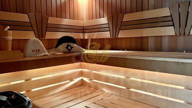 цокольный этаж: сауна, бассейн с подогревом, барная стойка, душевая