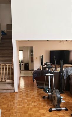 В доме 4 спальни (по ~15квм), кабинет, 2 с/у, кухня-столовая (~40квм); гостиная со вторым светом и камином (~40квм) + ТВ комната, зимний сад/бильярдная (36квм); сауна, подсобки, гараж на 2 а/м.