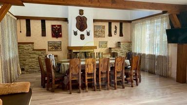 ОБ УЧАСТКЕ: На участке: крытая беседка, качели, мангал парковка 4 машины ( во дворе) О ДОМЕ: 400м.кв., 3 этажа Максимальное размещение 25 человек. На ночь до 25 человек. Всего 6 спален. 1 этаж: гостиная с камином в охотничьем стиле, кинотеатр, караоке, кухня, оборудованная всей необходимой техникой, 2 спальни, комната в японском стиле, сауна, бассейн с подогревом, зимний сад, с/у с ванной. 2 этаж: 3 спальни, бильярдная комната, с/у с ванной и гидромассажным душем. 3 этаж: спальня с с/у и гардеробом. По спальным местам: Спальня 1: 1 диван-кровать и 1 большая двуспальная кровать Спальня 2: 2 дивана-кровати и 1 большая двуспальная кровать Спальня 3: 2 дивана-кровати и 1 большая двуспальная кровать Спальня 4: 1 двуспальная кровать и 1 диван-кровать Спальня 5: 3 дивана-кровати Спальня 6: 1 двуспальная кровать Гостиная: 3 дивана-кровати Гостиная: 1 диван-кровать Заезд после 17:00, выезд до 14:00. СТОИМОСТЬ: Стоимость указана за будний день до 15 человек. Свыше 15 человек доплата 2000р/чел. Выходные 65000 до 15 человек. Свыше 15 человек доплата 2000р/чел. Пятница 35000 до 15 человек. Воскресенье 22000. Свыше 15 человек доплата 2000р/чел. В стоимость коттеджа включены бассейн (круглые сутки), сауна (4 часа в сутки), бильярд, мангал, посуда. ДОПОЛНИТЕЛЬНЫЕ ПЛАТЫ: Дополнительно оплачивается уборка от 3000 р (в зависимости от того, в каком состоянии останется дом), постельное белье 400р/комплект, полотенце 100р/шт, тапочки 200р/пара. Животное 2000р. ОСОБЫЕ УСЛОВИЯ: Обязательно в день заезда вносится залог 15000. Есть ограничения по шуму на улице после 21:00. Запрещен запуск салюта.