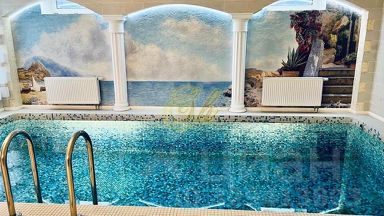 цокольный этаж: сауна, бассейн с подогревом, барная стойка, душевая