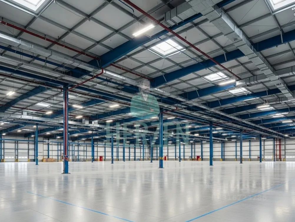 Ровный бетонный пол с антипылевым покрытием. Допустимая нагрузка нагрузка 5 т/м²