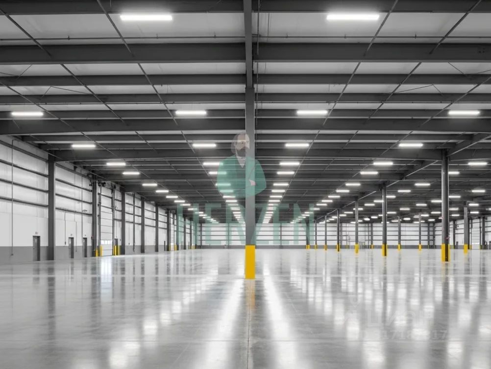 Ровный бетонный пол с антипылевым покрытием. Допустимая нагрузка 5 т/м²