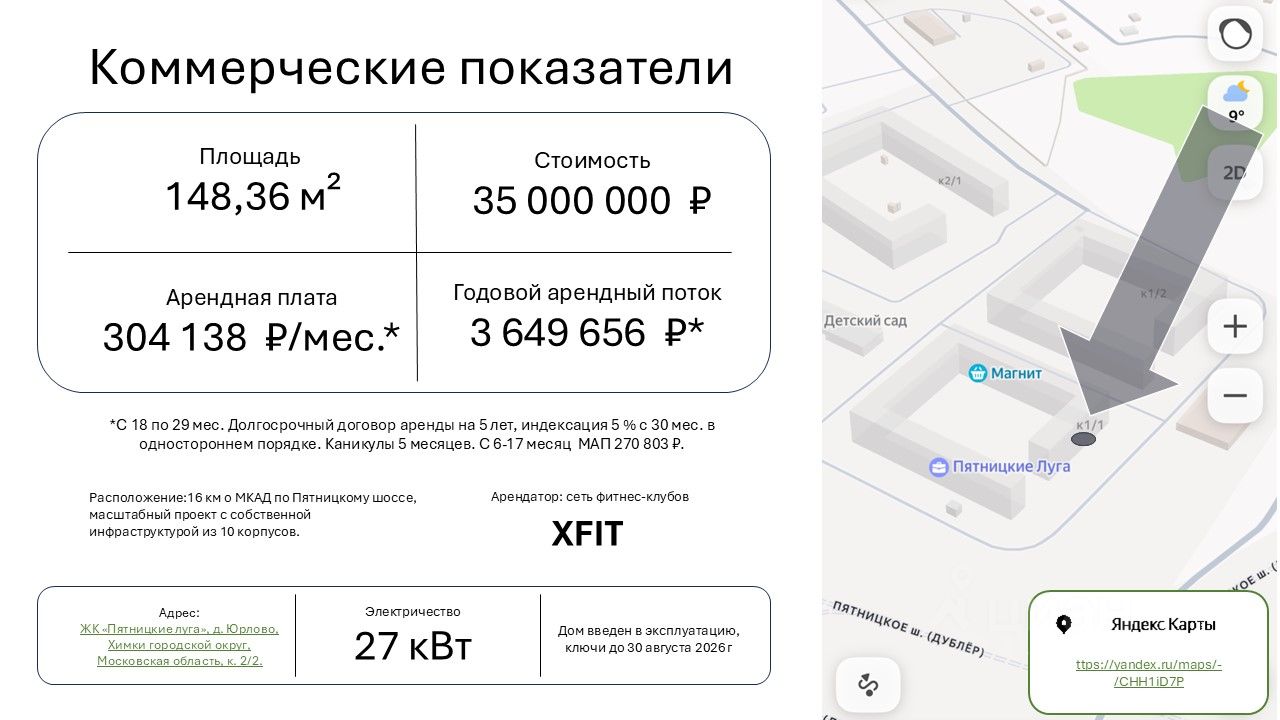 Готовый арендный бизнес - помещение свободного назначения с арендатором - сетью фитнес-клубов XFIT. Заключен долгосрочный договор аренды на 5 лет, условия: