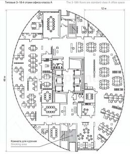 Помещение под чистовую отделку, открытая планировка. Центральная система кондиционирования, приточно-вытяжная вентиляция. Наземный и подземный паркинг (6 084 руб. и 12 000 руб. за м/место в месяц соответственно).