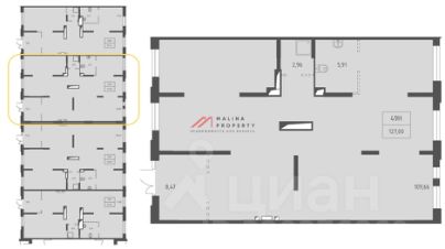Помещение 127 м2, располагается на 1-м этаж, отдельный вход с фасада, витринные окна по фасаду, высота потолка 4 м. Электрическая мощность 27 кВт. Место для размещения рекламы. Парковка перед фасадом.
