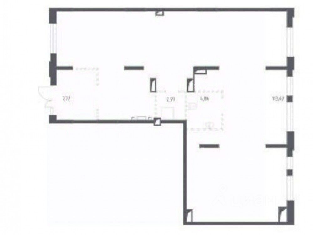 Первый этаж с витринными окнами 11-ти этажного жилого дома, площадью 129,2 м2. Отдельный вход с центральной улице, свободная планировка. Угловое помещение в центральном торговом коридоре ЖК, напротив многоуровневый паркинг. Высота потолков 4 м, количество электроэнергии 21 кВт с возможным увеличением. Состояния помещения - ремонт под ПВЗ.