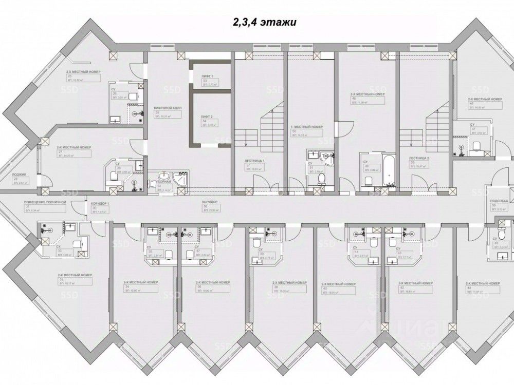 Здание оборудовано всем необходимым для осуществления гостиничного бизнеса.