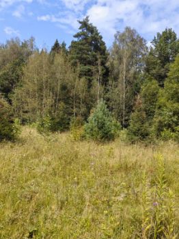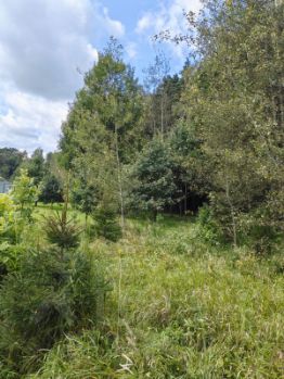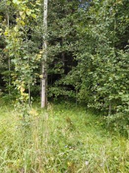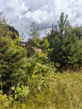 Земельный участок 15 сот, по факту 25 сот, граничит с лесом. Улица тупиковая, где исключается шум проезжающих машин. На участке произрастают молодые сосны и ели.